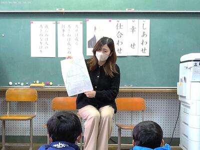 12/10(水)は、読み聞かせの日でした。今回は、黒田由美さんが2冊の素敵な本を読んでくださいました。『だいじょうぶだよ』では、認知症になってしまったおばあちゃんに「だいじょうぶだよ」と語りかける男の子が出てきました。子どもたちは、諸塚村の高齢者福祉施設「せせらぎの里」を訪問したことがあるので、利用されているお年寄りのことについて深く理解することができたのではないかと思います。もう一冊の『かぞえてすすめ』の絵本は、いろんなものを算えながら由美さん手作りのビンゴをしていく面白い絵本でした。一画で書けるひらがながいくつあるかな?という問いにみんな一生懸命算えていました。楽しい読み聞かせでした。ありがとうございました。