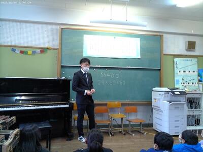 12/11(木)の3時間目に5・6年教室で「荒っ子みんなで世界旅行を楽しもう」という授業がありました。ジャンケンゲームの後、正樹先生が今日どんな学習をするのかビリー先生と一緒に説明してくださいました。