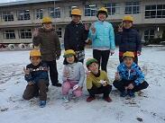 子どもたちは、登校後雪遊びをしたようです。「今まで雪が降っているのは見たことがあるけど、積もってるのを見たのは初めてです。」と1年生が話していたり、3年生は雪に覆われた運動場を見て「あー、この上で寝てみたい。」と言ったりしていました。それに対して5年生が「膝くらいまで積もらんと寝られんよ。」等と楽しそうに話しながらも、名残り惜しそうに教室に帰っていきました。