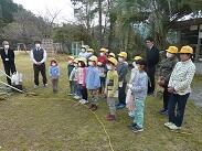 この原木にしいたけがはえてくるのは、来年の秋だそうです。1年生が3年生になった秋ということになります。その頃年長さんは2年生、この原木を使ってしいたけの学習をしているのかなぁと思い浮かべるとワクワクしてきます。