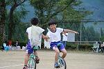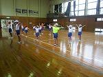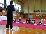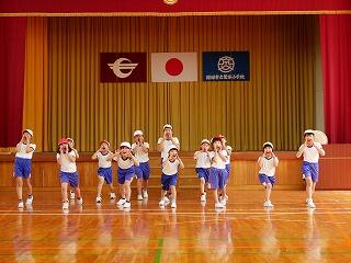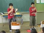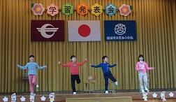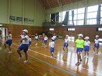 その後、グループごとに発表をしました。前跳びや後ろ跳び、横跳び、かけ足跳び等いろいろな跳び方を組み合わせて跳んでいました。あるグループは前奏を利用してアレンジを加えていたり、最後にはポーズをとったりして、それぞれの工夫が光る発表でした。