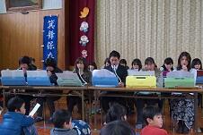 学習発表会の中盤の最後のプログラムは合同合唱・合奏「ふるさと」です。地域の方々に対する感謝の気持ち、憧れの気持ち、荒谷・南川に対する自分たちの思いをこの発表に表現しました。