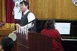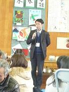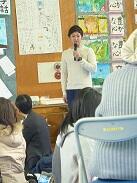 この学習発表会には「懐かしの先生紹介」というプログラムがあります。毎年、異動された先生方が学習発表会にきてくださり、感想をお話しくださいます。今年度も2名の先生がお越しくださいました。