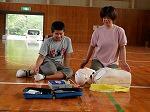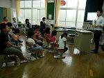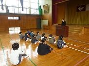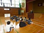 6校時は、心肺蘇生法講習会でした。日本赤十字社宮崎県支部の方に講師として来ていただき、保護者、職員と一緒に5・6年生も参加して、心肺蘇生法やAEDの使い方を教えていただきました。