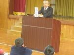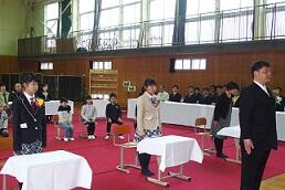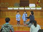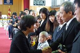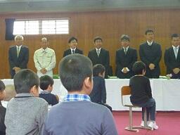来賓の方々から温かなお祝いの言葉や記念品をいただきました。緊張した表情だった1年生でしたが、「あいさつ」や「礼」がとても上手でした。