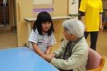 せせらぎの里では、はじめにダンスと将来の夢の発表をして、せせらぎの里の方々へエールを送りました。笑顔いっぱいの発表で利用者の方々へ元気を届けることができました。エールを送った後は、グループに分かれてすごろくゲームでのふれあいです。はじめは緊張していましたが、事前に職員の方々に教えていただいた接し方でハイタッチをしたり、一緒に歌を歌ったりしながら自然と笑顔が増えていき、楽しくふれあうことができました。その他にも、聴診器やリフトバスの乗車や操作など貴重な体験をたくさんさせていただき、色々な職業があることを学びました。