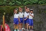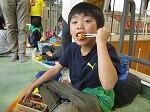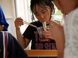 2日目、最後に保護者の方々が準備してくださった竹でそうめん流しをしました。そうめんだけでなく、ミニトマトやきゅうり、さくらんぼも流れてきて、必死にはしでつかんでは、ほっぺたを膨らませて食べていました。