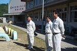 二日目、土々呂中学校と合同で、朝のつどいをしました。朝のつどいでは、朝のあいさつを6年生が、3年生がラジオ体操を代表で立派に発表しました。