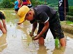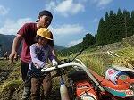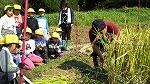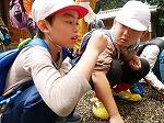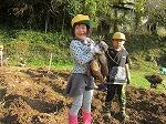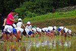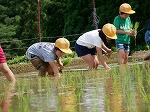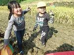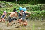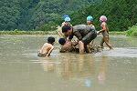 田植えでは、芋の畑と同様、地域の方の田んぼをお借りして体験をさせていただきました。列に沿って真っ直ぐに植えるのに苦労しながらも、1本1本丁寧に植えることができました。泥の中に手足を入れる感触もとても楽しかったようでした。