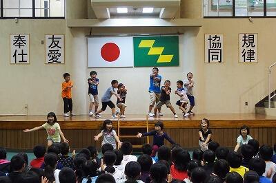天体観測の後は、土々呂中学校やむかばきの職員の方々へダンスの発表をしてエールを贈りました。たくさんの拍手をおくられ、とてもうれしかったようでした。