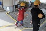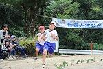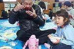 【こま打ち初体験の1年生】【年中・年少の保育所生も見学に来ました】