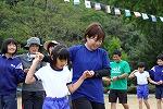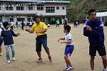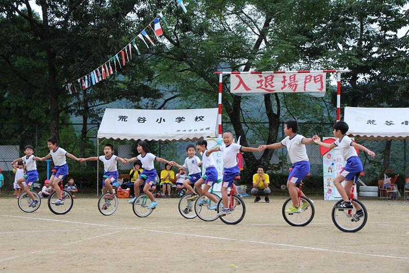 いつもとは違う環境の中で、荒谷小の子どもたちはどのような行動をするのか見ていると、「まずは、かけあし跳びをしよう!」という他校の友達の言葉に、「あ!それできる!!」と言って跳んで見せる子どもがいたり、先生の言葉にしっかりと耳を傾けている子どもがいたりしました。普段とあまり変わりない子どもたちの姿が見られて安心しました。