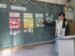 まずは、健康に過ごすために心がけていることを尋ねました。すると「手洗い・うがい」「早寝・早起き」「運動」「マスクをつける」「食事」などの答えが返ってきました。その中の「食事」について、「お家で食事を作ってくれるのは誰ですか?」と尋ねました。すると、ほとんどの子どもたちが「お母さん」や「おばあちゃん」と答えていました。5・6年生は時々食事を作る手伝いをするようですが1~4年生はあまりそのような経験はないようです。