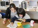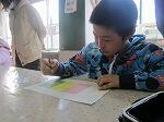 2年生は、準備した説明文をもとに1年生に作り方を教えていました。それ以外にも「画用紙は何色がいい?」「何を書きたい?」等と、声をかけながら作業を見守っていました。