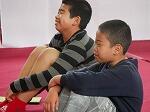 お話の後は、早速こま打ちを始めました。下級生と上級生のペアや、保育所生と小学生のペアを作って行いました。