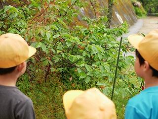 3月はじめ、校舎前に咲いていたきれいな桜がさくらんぼの実になっていたので、みんなで一個ずつ食べてみました。