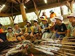捕まえたマスで調理にもチャレンジしました。「命をいただくこと」を体験して学びながら、自分で調理したマスのおいしさに感激していました。