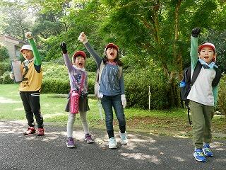 朝ごはんをもりもりと食べた後は、ウォークラリーです。地図を読みながら、クイズを解きながら、班ごとに協力してゴールを目指しました。