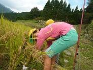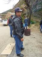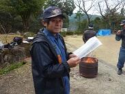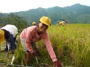 作業に参加されていた女性の方はヒモを装着した草刈りを使用されていて、「草刈りは楽しいよ~。このヒモはだんだん擦れていくとよ。ヒモが細くなったら替えんと切れんなるとよ。」と教えてくださいました。何本も替えのヒモをお持ちで、手際よく替えておられました。