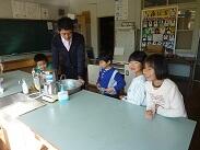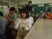 3・4年生も箸の持ち方を確認しながら動かしていました。「3年生の3学期に箸の持ち方を教えてもらって、4年生の1学期にはできるようになっていました。」と話す子どももいました。練習を続ければできることが友達の姿からも分かり、やる気が湧くのではないかと思います。