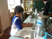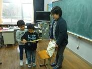 3年生は、一昨日と同じように理科の学習で体重計を使って重さを測っていました。一昨日学習した子どもが「次は片足で立ってみて。」とか「今度は力を入れてみて。」等と言葉をかけながら、重さの変動がないかを確かめていました。今日は2人で理科の学習だったので、とても嬉しそうにしていました。