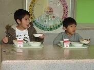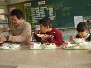 1・2年生もこれから練習を重ねて正しい箸の持ち方を習得していくと思います。1・2年生教室では、担任の先生が献立を読んでくださったり、一口メモを読んでくださったりしていました。
