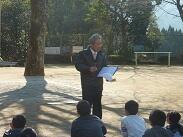 終業式の最後は、校長先生のお話です。校長先生は「計画」と「命」というキーワードを子どもたちに話されました。