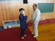 【はじめに衣装合わせ 男の子はねじり鉢巻きをします】
