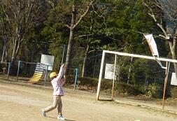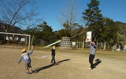 凧をあげる時に、運動場を走り回って凧をあげる子どもがいたり、凧糸を巧みに動かしながらゆったりと凧をあげる子どもがいたりしました。わずかに吹く冷たい風をうまく捉えて、一人ひとり違う凧あげを楽しんでいました。