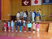 合唱は保育所生と一緒に行いますが、合奏は小学生だけで行います。鍵盤ハーモニカ・リコーダー、大太鼓と小太鼓、そしてトライアングルを役割分担して演奏します。途中、音楽主任の先生から「みんなは、どんな気持ちで演奏したい?」と子どもたちに質問がありました。「感謝の気持ちをもって演奏したいです。」「諸塚があるから荒谷小があると思って演奏したいです。」等、子どもたちはそれぞれに思いがあることを伝えていました。すると「その気持ちを演奏に込めてみてください。音が変わってくるから。」とアドバイスがありました。子どもたちのその後の演奏は、伸びやかで美しい音色になっていたように思います。