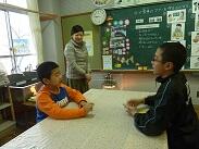 今日は、諸塚村緑のふるさと協力隊の方が荒谷小にお越しくださいました。この方は、普段は諸塚村内で農作業のお手伝いなど、色々な作業のお手伝いをしてくださるボランティアの方です。今回、荒谷小にいらっしゃったのは12月に林業アピールツアーに参加してくださったことがきっかけです。そこで、ツアーを企画した本校6年生の学習発表会の発表について相談をしたり準備をしてくださったりするためにお越しくださいました。