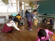 鬼をめがけて、豆を投げつける子どもたち。負けじと戦おうとうする鬼たち。豆が無くなると、鬼たちは教室から出て行きました。その後、鬼役をした子どもも戻って、投げた豆を拾いました。