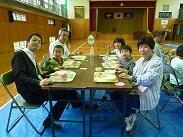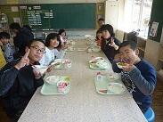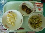 その後、一緒に給食を食べました。「学校の給食は何年ぶりだろう?」と楽しみにしてくださっているようでした。今日の給食は、むぎごはん、はちはいじる、魚の野菜あんかけ、牛乳です。