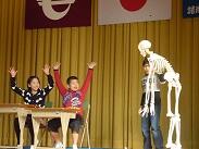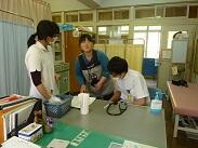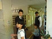 夕食が終わったら、きもだめしや花火をしました。きもだめしでは、まず図書室で先生から怖い話を聞きました。その時点で怖くなった子どもたち(保育所生)は、図書室から出て体育館で遊びました。小学生は、グループごとに学校の中できもだめしです。途中で涙が出る子どもや、あっけらかんとした表情で帰って来る子どもなど様々でしたが、みんな無事に帰ってきました。