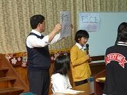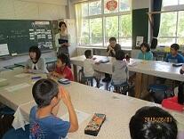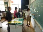5・6年生の英語活動をのぞいてみると、デンマークからのお客様の紹介をしていました。英語で「私は何歳でしょう?」、「背は何センチでしょう?」などと質問をし、それに子どもたちが英語で答えます。ALTの先生は英語も日本語も喋ることができるので、子どもたちは「ALTの先生が通訳みたいやったね」と話していました。