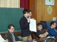 「FSC認証のための10の原則」の中の、「3 昔から森に暮らす人々の伝統的な権利を尊重している」では、伝統を残し、昔ながらの生活を守るということと解釈をしました。そして、伝統には神楽やモザイク林なども含まれるということを学びました。「7 調査されたデータに基づき、森林管理を行っているかどうか定期的にチェックしている」は、この言葉がどのようなことを指しているのか分からなかったようでした。そこで、産業課の方や森林組合の方が実際の管理についてお話しくださいました。諸塚村には、スギが植えられている所にモニタリングポイント(村内で10箇所)があるそうです。そのモニタリングポイントを1年に2箇所をチェックし、どれだけ木が成長したか、いつ間伐をしたらよいか等を継続的にチェックしているそうです。また、森林経営計画というものもあり、これらの森林管理が違法伐採を防ぐことにつながるとお話しくださいました。
