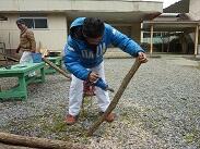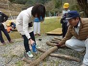 できあがった後、「原木に水をかけたーい!」と言う子どもがいました。この原木に水をかけてもいいのかどうか、明日しいたけ博士に聞いてみようと話していました。しいたけ博士、これからもご指導よろしくお願いいたします。