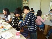 夕方から5・6年生は夕食作りをしました。夕食のメニューは、カレーライス、サラダ、フルーツ白玉です。保護者の方々にも手伝っていただきながら、手際よく作っていました。