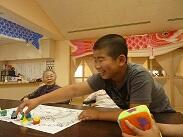 夕方降っていた雨はやみ、外で花火をしました。赤や黄色に変わる花火を見て「きれいだな~」と言ったり、「線香花火が最後にぼわっと広がりました!」と驚いた表情をしていたりして、夏ならではの楽しみを満喫していました。最後は打ち上げ花火を見ました。ヒューンヒューンと飛んでいく花火をキラキラした目で追い続けていました。