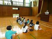 その後、わくわく学習発表会のリハーサルです。このわくわく学習発表会では、1~6年生が総合的な学習の時間(わくわく学習:ウッジョブ諸塚)で学習してきたことを発表します。1・2年生は「おおきな なば」、3~4年生はポスターセッションをします。また、最後にはパネルディスカッションも行われます。そこでは6年生の児童が進行を行います。この6年生をもり立てるために、パネルディスカッションでは、2つのお題に対して自分なりの答えをもっておく必要があると指導がありました。6年生が進行をするという初めての試み、みんなで協力して活発な話合いができるようにしましょうね。