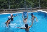 2日目は宝探しや水泳特練を行った後、子どもたちが楽しみにしているそうめん流しを行いました。そうめん流しに使う竹は、保護者の方々が朝取ってきてくださって組み立ててくださいました。気持ちよさそうに流れてくるそうめんを箸でつかみ、ツルツルと食べる子どもたち、あっという間にそうめんが無くなりました。また、子どもたちが持っている竹の器も手作りで、口元がまるくしてあります。「まるくした方が食べやすいかなぁと思ってやってみました」と保護者の方が話されていました。