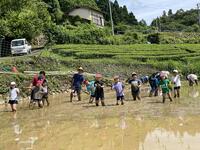 地域の方のご厚意で田んぼをお借りして6月7日(金)に全校生徒で田植え体験学習を行いました。思いのほか田が深く、児童は悪戦苦闘しながら、自分のペースで苗を植えておりました。それぞれ見事なカーブを描いたり、ジグザクになったり、大人が修正を加えながら、田植え体験学習を終えました。講師の先生も「今年はいいぞ!合格」と苦笑いしながら言っていただきました。普段体験することができない貴重な体験となり、今後の食事で米粒1つ1つを大切にすることにつながっていくような気がします。準備してくださった地域の方々、手伝ってくださった保護者の方々ありがとうございました。