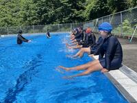 子ども達が楽しみにしていたプール開きができました。この日は5時間目のプールの時間に合わせて、お日様が照りつけ、気温もぐんぐん上昇、絶好のプール日和となりました。ただ、山の水は冷たい冷たい、ギブアップしてプールサイドで日光浴する児童もいたほどです。自分たちできれいにしたプールで、9人の児童は初泳ぎを楽しむことができました。安全に留意し、楽しみながら泳力を高めていけるといいですね。