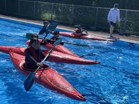 7月22日(月)の2・3校時に山本多喜弥さん、山本直八さんのご厚意でカヌー体験学習を実施しました。最初のうちは、なかなか真っ直ぐに進むことが難しく子ども達は悪戦苦闘していましたが、優しく丁寧なご指導で、どんどん上達し、最後にはカヌーを乗りこなしていました。お忙しい中、準備とご指導をありがとうございました。