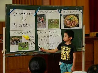 本校には、「わくわく学習」という荒谷小ならではのキャリア教育があります。1・2年生が「諸塚を知る」、3・4年生が「諸塚を再発見する」、5・6年生が「諸塚に貢献、諸塚を発信する」ことをテーマに1年間で様々な体験活動や探究活動をしていくことで、諸塚村の未来と自分の将来を結びつけ、自分の生き方について考えるというものです。