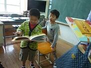 読み聞かせの後、「あ~面白かった!」と行って満足そうに教室に帰っていく3~6年生、元気を注入してもらったようです。また、読み聞かせの会場だった1・2年生教室では、1・2年生が「とってもおおきなさんまのひらき」をパラパラめくりながら「これが面白かった~」と話していました。「たいやきはお菓子なのに動いたよ~!!」と興奮しながら話す子どももいました。絵本が子どもの心を大きく刺激したようでした。