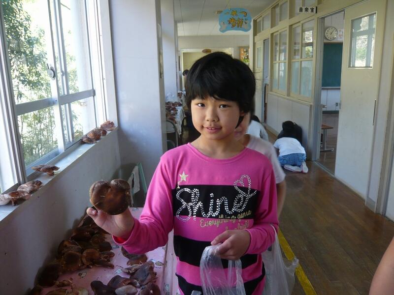 昨日から今日にかけて、1・2年生が大切に育てているしいたけの収穫をしました。しいたけは、たくさん生えていたようで、廊下にはところせましとしいたけが並べられていました。そして1・2年生が「欲しい人はしいたけを持って帰ってください。100個はあると思います」と嬉しいことを言ってくれました。早速、昼休みにみんなでしいたけのおすそ分けをいただきました。