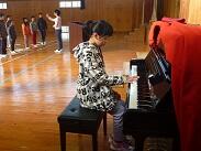 一言発表が終わると、校歌斉唱です。「指揮◯◯さん、伴奏◯◯さん」という言葉に、みんなが驚いたと思います。なぜなら、今年度の校歌斉唱はずっとCDを流して歌っていたからです。ゆっくりと伴奏をするピアノの音色が優しく、いつもの校歌斉唱とは一味違った温かい歌声になりました。