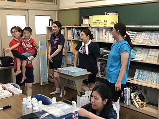8月24日(土)、荒谷小学校恒例のPTAバレーボール大会を行いました。大会前には、役場の方々にお越しいただき、救急法や熱中症の対応、虫刺されの処置等、すぐに実践に結びつく講習をしていただきました。