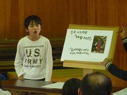 その後は、5・6年生の発表です。まず、6年生が弓の唱経を歌いました。会場からは、「初めて最初から最後まで聞いた」と話す声も聞こえてきました。そして5年生は読書感想文の発表をしました。その後のわくわく学習の発表につながるような発表でした。